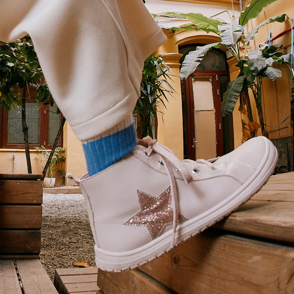 BOTIN CORDONES PIEL ESTRELLA ROSA PALO