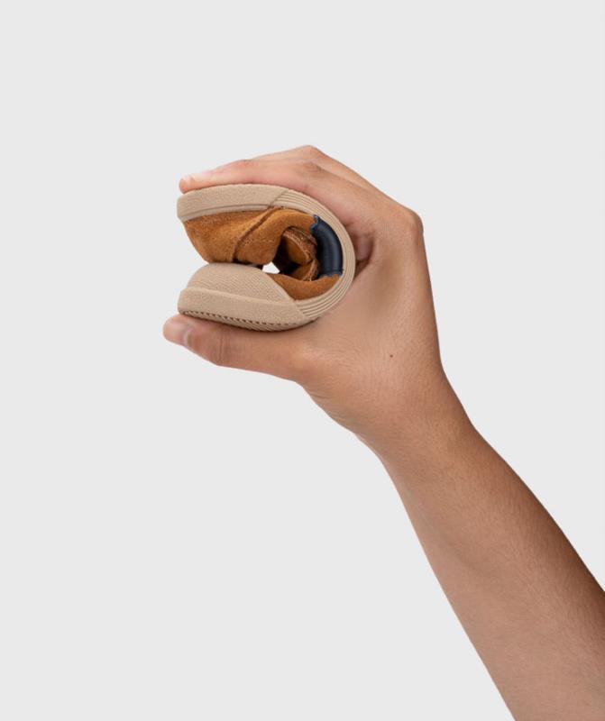 Deportivos de serraje de concepto barefoot wide, con la puntera más ancha, cero drop, flexible y blandito, plantilla extraíble y cierre adherente para mayor ajuste y autonomía.